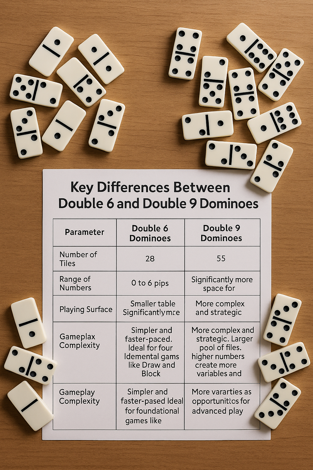 Die Unterschiede in der Zählung von Fliesen und der Spiele zwischen Double 6 und Double 9 Domino -Sets schaffen grundsätzlich unterschiedliche strategische Landschaften. Eine Gewinnstrategie für einen Satz ist für den anderen möglicherweise nicht so effektiv.