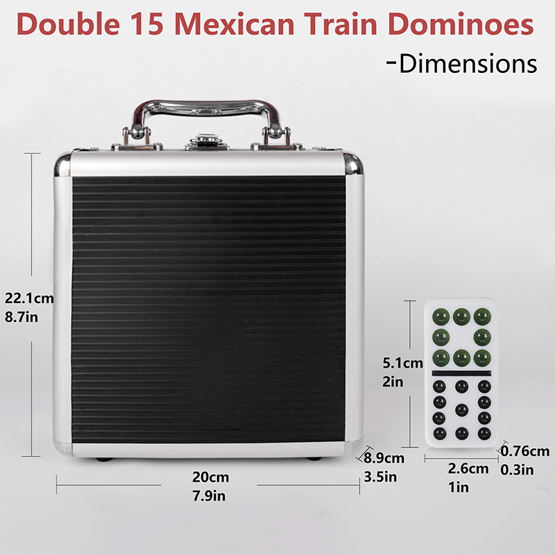 Das Set ist mit einem robusten Aluminiumgehäuse ausgestattet, das dauerhafte Lagerung und bequemes Tragen bietet. Ob zu Hause, im Freien oder unterwegs, Sie können das Spiel leicht tragen und schnell beginnen. Das Design der Aluminiumbox gewährleistet nicht nur die Integrität der Dominosteine, sondern bietet den Spielern auch eine kompakte und bequeme Speicherlösung.