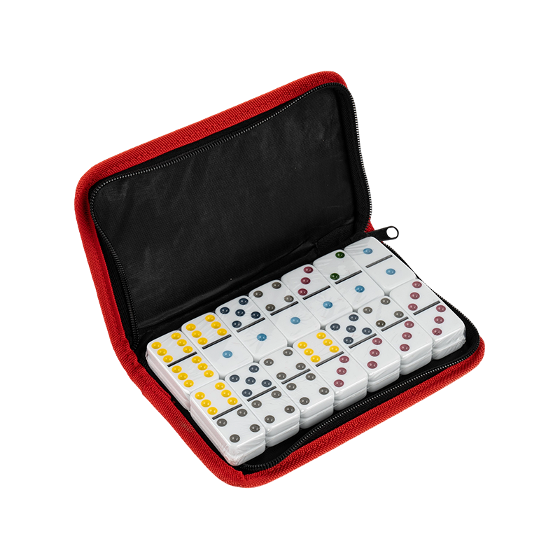 Doppelte 6 Dominosteine für Erwachsene im tragbaren roten Canvas-Etui Brauch