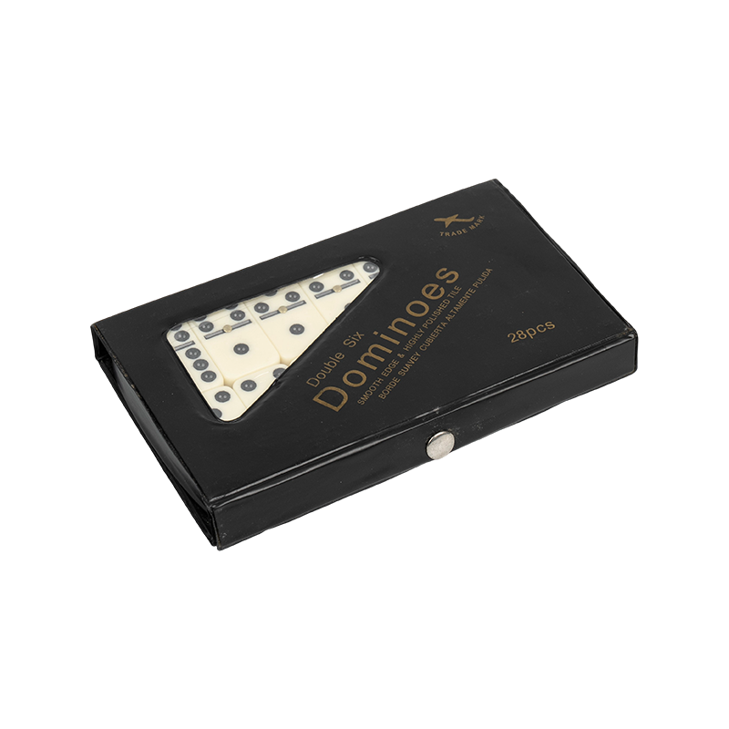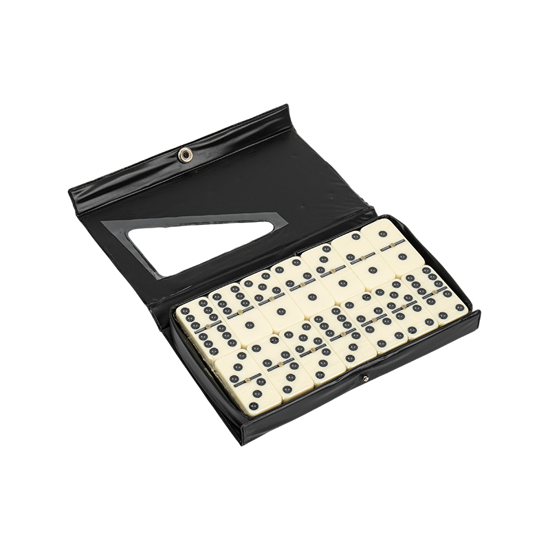 Dieses Set ist mit einer schwarzen Vinylbox für einfache Lagerung und Tragen mit einfachem Design und gutem Schutz ausgestattet. Die Schachtel besteht aus stabilem Material, das die Dominosteine effektiv vor äußeren Schäden schützen kann. Gleichzeitig ist es leicht zu tragen, sodass Sie es im Freien oder an andere Treffpunkte einnehmen können.